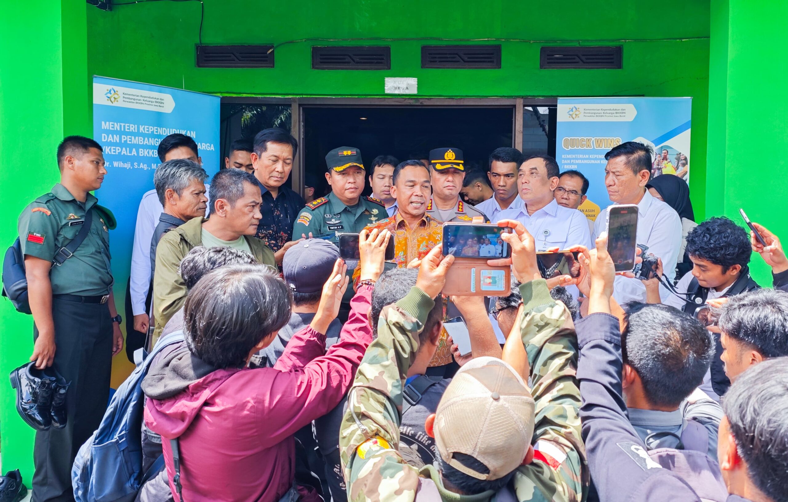 Didampingi oleh Deputi Bidang Promosi dan Kerjasama, Nyoto Suwignyo, di Aula Desa Serangmekar, Wihaji menjelaskan kerja sama antara Kemendukbangga/ BKKBN dengan Badan Gizi Nasional untuk pemberian makan gratis bagi sasaran khusus dalam upaya pencegahan stunting.