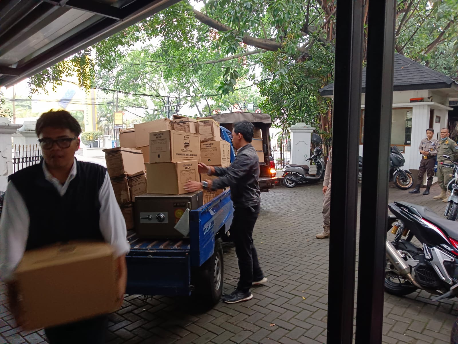 Dengan mobil dinas BKAD dan dibantu mobil Satpol PP, seluruh dokumen aset serta sewa tanah dipindahkan ke gedung bidang aset yang lama.