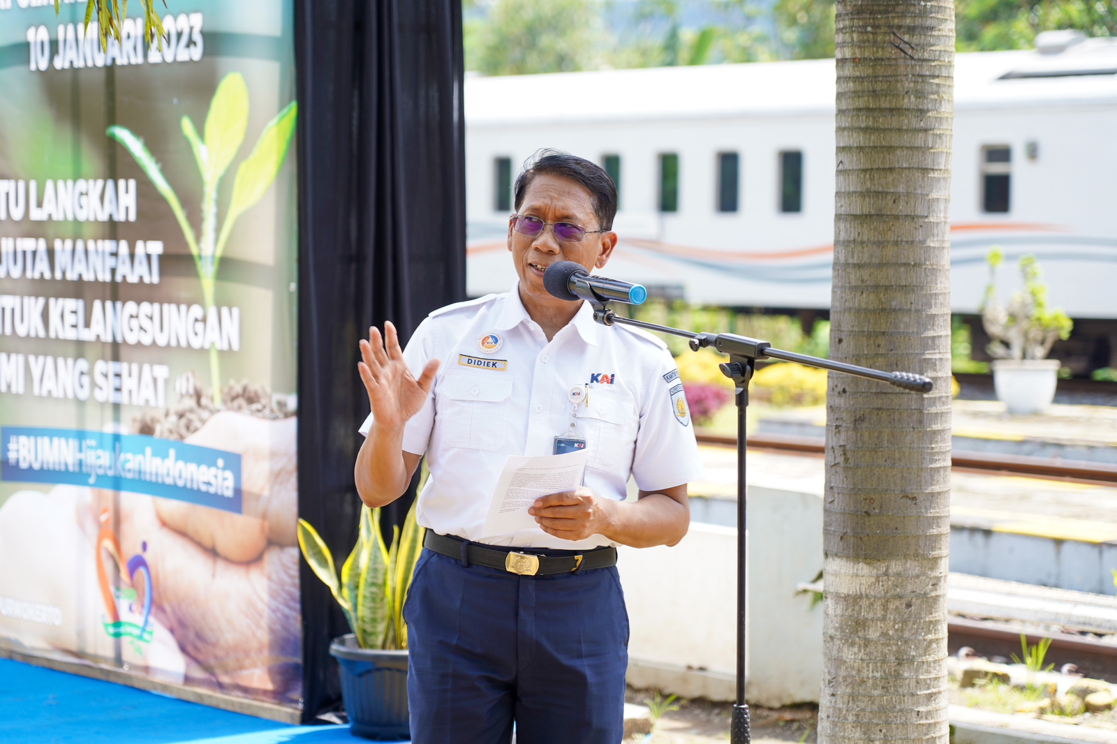 “Melalui momentum yang sangat bagus ini, saya mengajak seluruh insan KAI untuk turut berperan aktif mewujudkan program gerakan satu juta pohon di lingkungan KAI, termasuk langkah-langkah proaktif mengedukasi masyarakat dalam melestarikan alam sekitar, terutama menjaga pohon di sekitar kita,” ujar Didiek.
