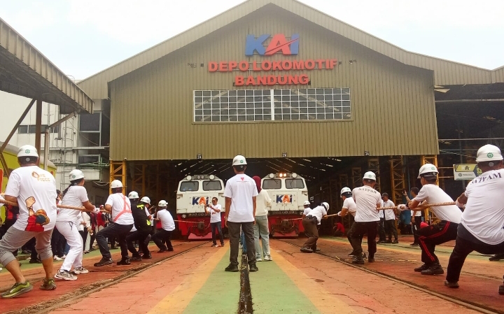 Dengan penuh teriakan penyemangat, mereka bersama-sama menarik lokomotif seberat 80 ton sejauh 20 meter. Lomba tarik lokomotif ini menjadi salah satu cara unik KAI memperingati Hari Ulang Tahun ke-80 Kemerdekaan Republik Indonesia.