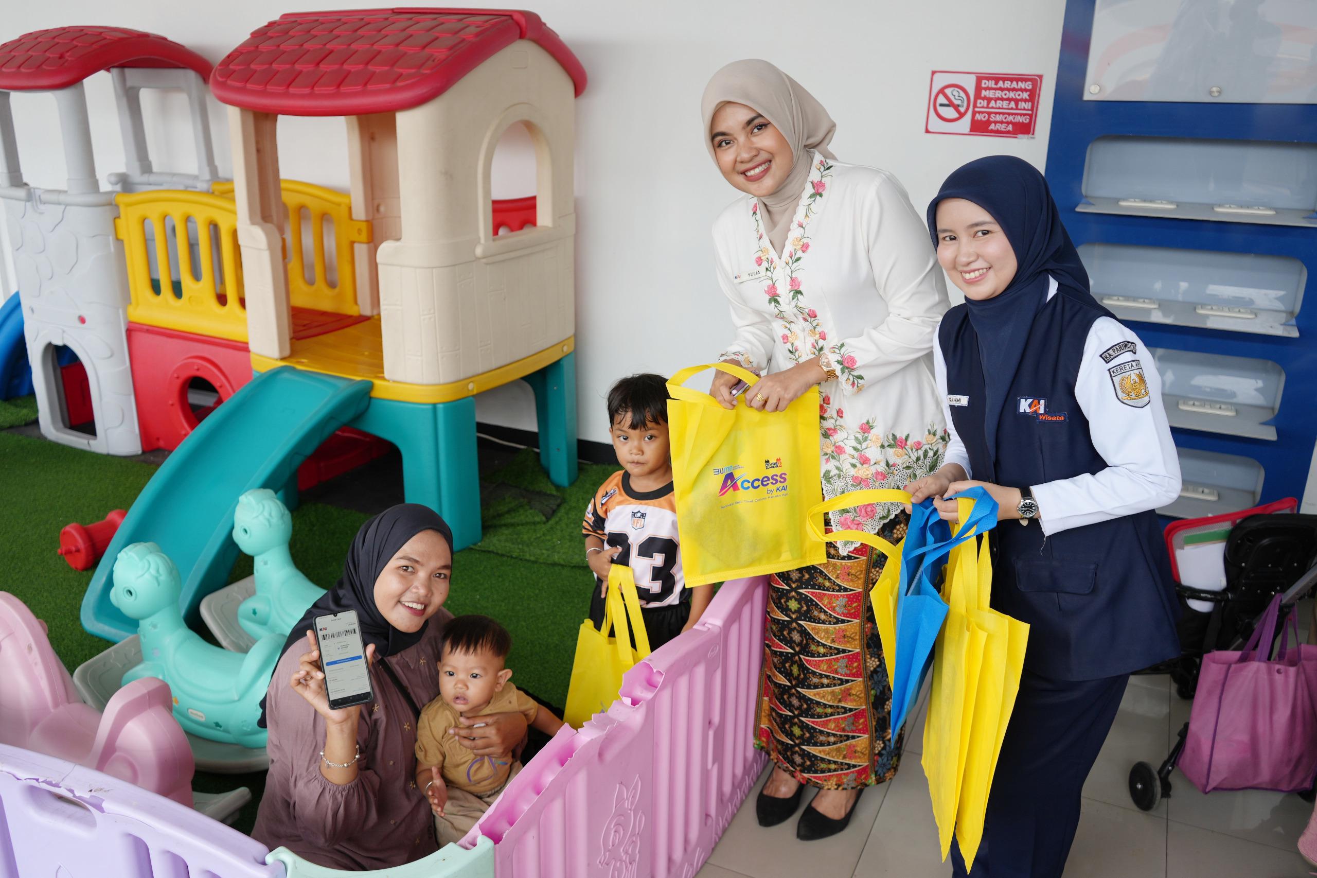 Para petugas frontliner membagikan souvenir kepada penumpang di ruang tunggu maupun di dalam rangkaian kereta. Interaksi langsung antara petugas dan penumpang menciptakan suasana hangat, sekaligus menegaskan komitmen pelayanan prima.